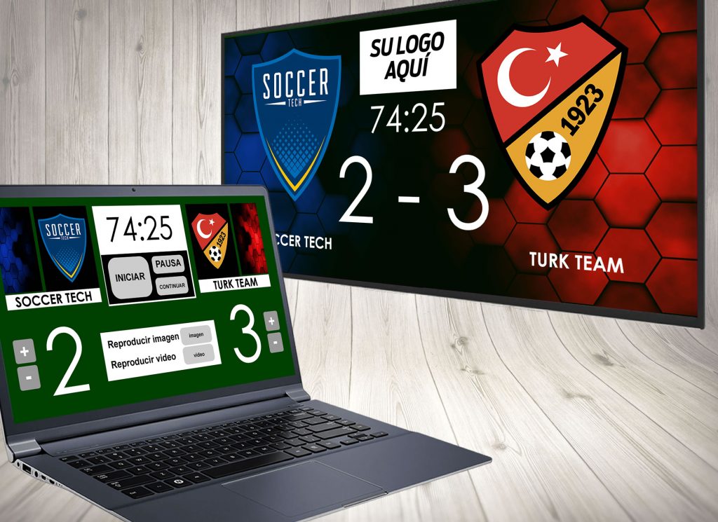 Este tanteador fué pensado y diseñado para estadios de fútbol profesionales o amateurs, siendo perfecto por su excelente contraste de colores y alta resolución de imagen, haciendo que la visualización por parte de los espectadores sea agradable y perfecta. Cambiando los fondos de los equipos se pueden obtener diseños personalizados llevándolo a un nivel visual superior. Con tipografía moderna y llamativa, es la mejor opción visual para llevar los pormenores del partido. Sistema super versatil e intuitivo para su uso, con la opción de visualizar pantalla completa de imagenes fijas, imagenes animadas o videos HD ideales para publicidad, sponsors, institucionales y/o presentación de equipos/jugadores.